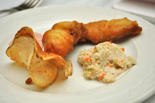 Blueberry salmon fish and chips. The cole slaw alone was worth the price of admission!
