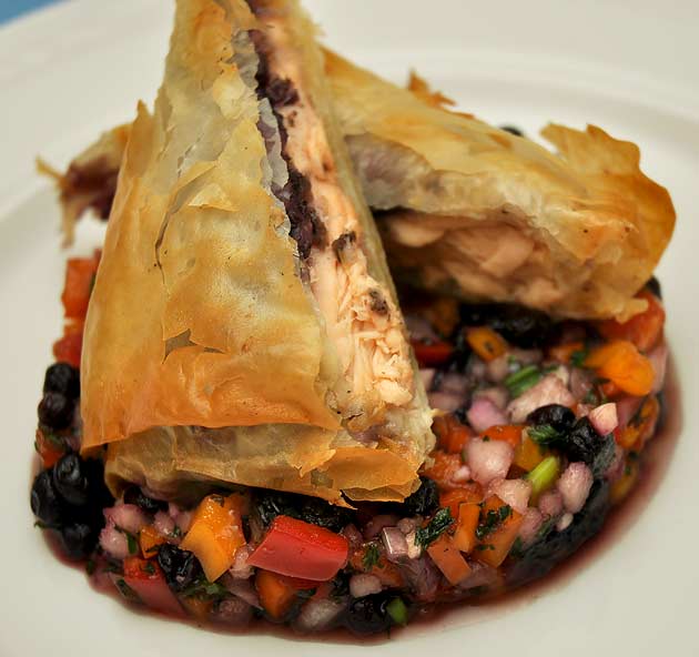 The winner: Phyllo-wrapped Salmon with Blueberry-Pear Pico de Gallo, by NBCC student Shelby Wilson.