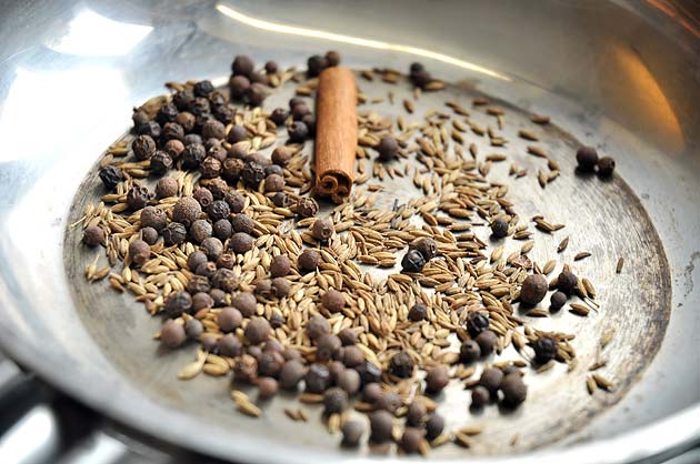 1/2 teaspoon each whole allspice, black peppercorns and cumin seeds
