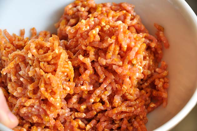 I recently came across a fabulous deal on some pork shoulder, the perfect kind of cut for making sausages or any other kind of ground pork dish. A good 1.5 lb hunk of shoulder was only $2.52. I bought two more for under $3 and put them in the freezer. I make all kinds of stuff with pork shoulder so this was a great buy.