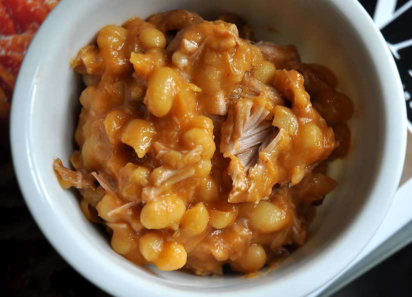 Pork and beans! I stewed a pork hock for a heck of a long time with some white navy pea beans and they got along smashingly.
