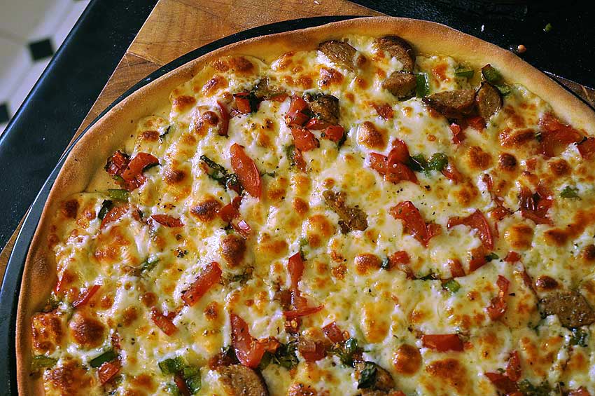 A thin crust pizza. Lately I’ve been all about thin, crispy-crust pizzas. Call me shallow.