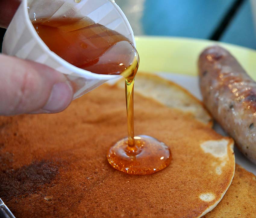 Just for the porn. Maple syrup on pancakes and sausage from Elmhurst Outdoors on the Kingston Peninsula. Gotta have syrup at this sausage fest.
