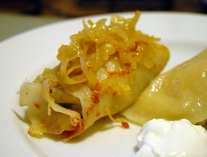 Squash-stuffed fresh ravioli. They were boiled then tossed in a simple sauce of butter and fresh sage. Nice fall-winter dish.