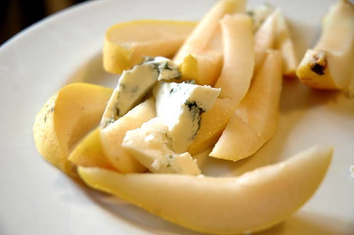 Pears and blue cheese. Extremely complicated recipe but delicious. A classic match for an afternoon snack.