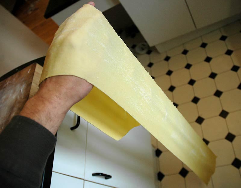 Some of the eight feet or so of fresh pasta I made for a lasagna.