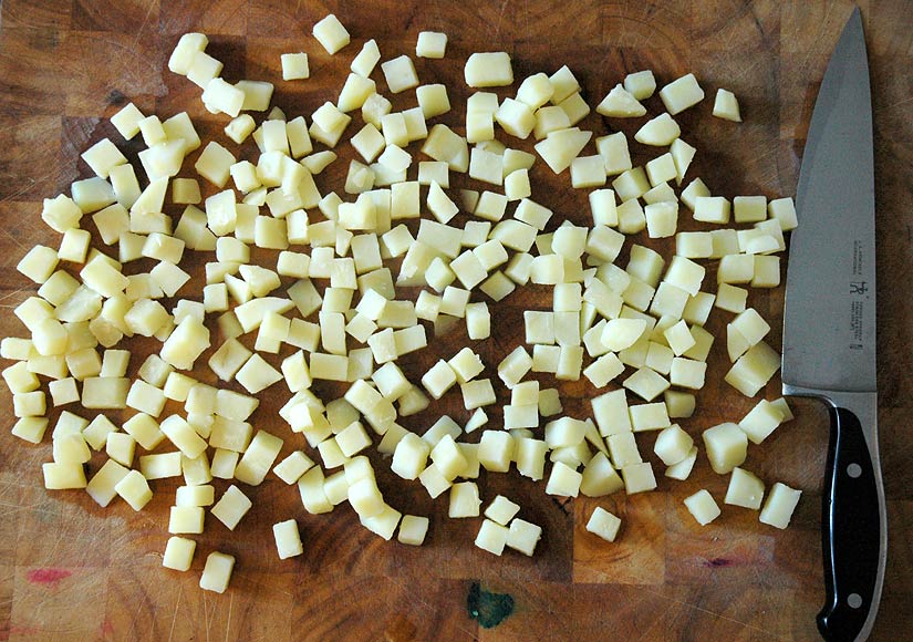 This bit of abstract art resulted from cooling off two New Brunswick Russet potatoes worth of hash browns just after boiling them on a Saturday morning. Moments later, they were browning up in a cast iron pan.