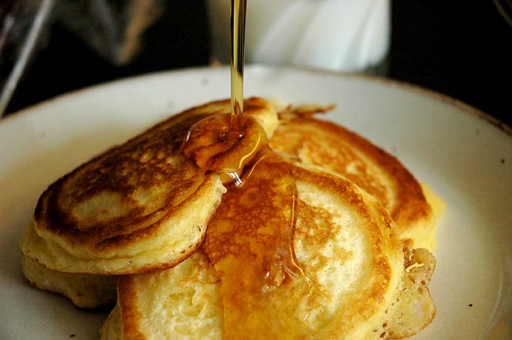 Pancakes for one. Made with just one egg and an unmeasured handful of flour. Just eyeball it, measuring kills, well, you know the drill.