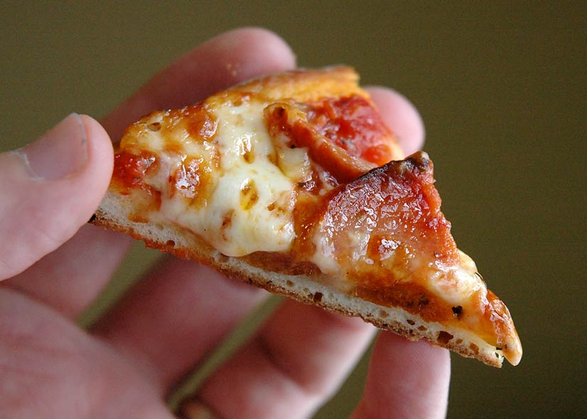 Tiny pizza! This was actually a slice from a regular slice. I always cut Alexandra’s pizza in three pieces, leaving two strips and a small triangle, and this was the small triangle. Cute!