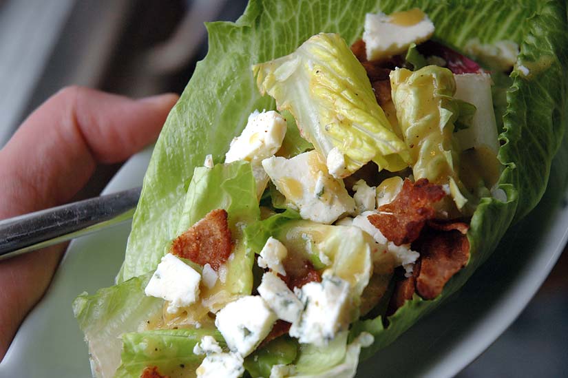 Variety is the key. Most grocery stores have cheese counters and bulk foods that allow you to buy very small amounts of great stuff. With salads in mind, get a few different types of cheese, a few different types of nuts, some sun dried tomatoes and anything else you’ve ever had in your favourite restaurant salad. It’s those powerful accents that are going to make for a great salad. Crunch is something to pay attention too as well. It shouldn’t only come from the greens. Crispy bacon does the trick, nuts of all kinds are great and Average Betty made a great salad a while back that was topped with toasted tortillas. Brilliant!