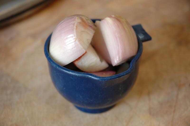 A heaping half cup of sweet shallots that give the curry paste great flavour and volume.