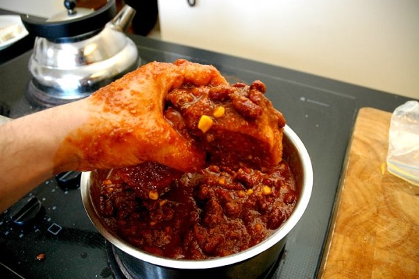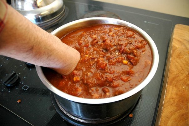 Apply the hot dog to the chili mixture. Let simmer for 5 minutes.