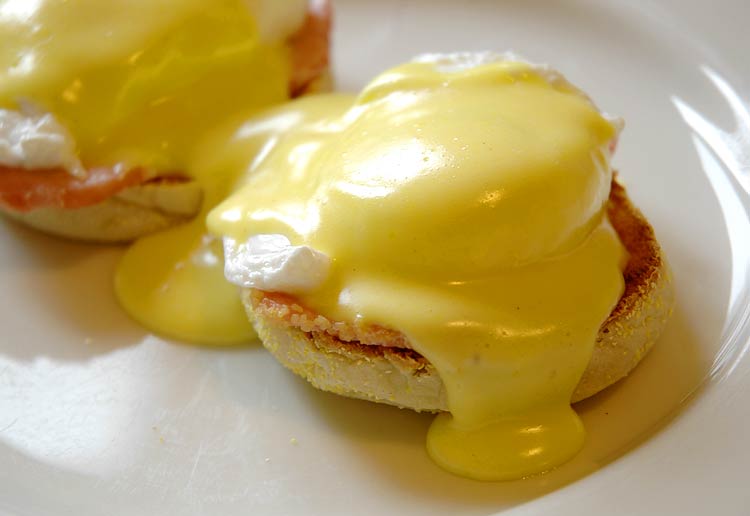 If you haven’t done it before, try making your own hollandaise sauce. It’s easier than you think and you’ll enjoy it a lot more than some kind of processed packet. I just use the classic Joy of Cooking recipe. I like to add a few more drops of Tobasco or other hot sauce to my eggs at the table.